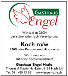 Wir suchen per sofort oder nach Vereinbarung einen Koch m/w. Werde Teil unseres Teams und hilf mit, unsere Gäste mit feinen Engel-Spezialitäten zu verwöhnen. Wir