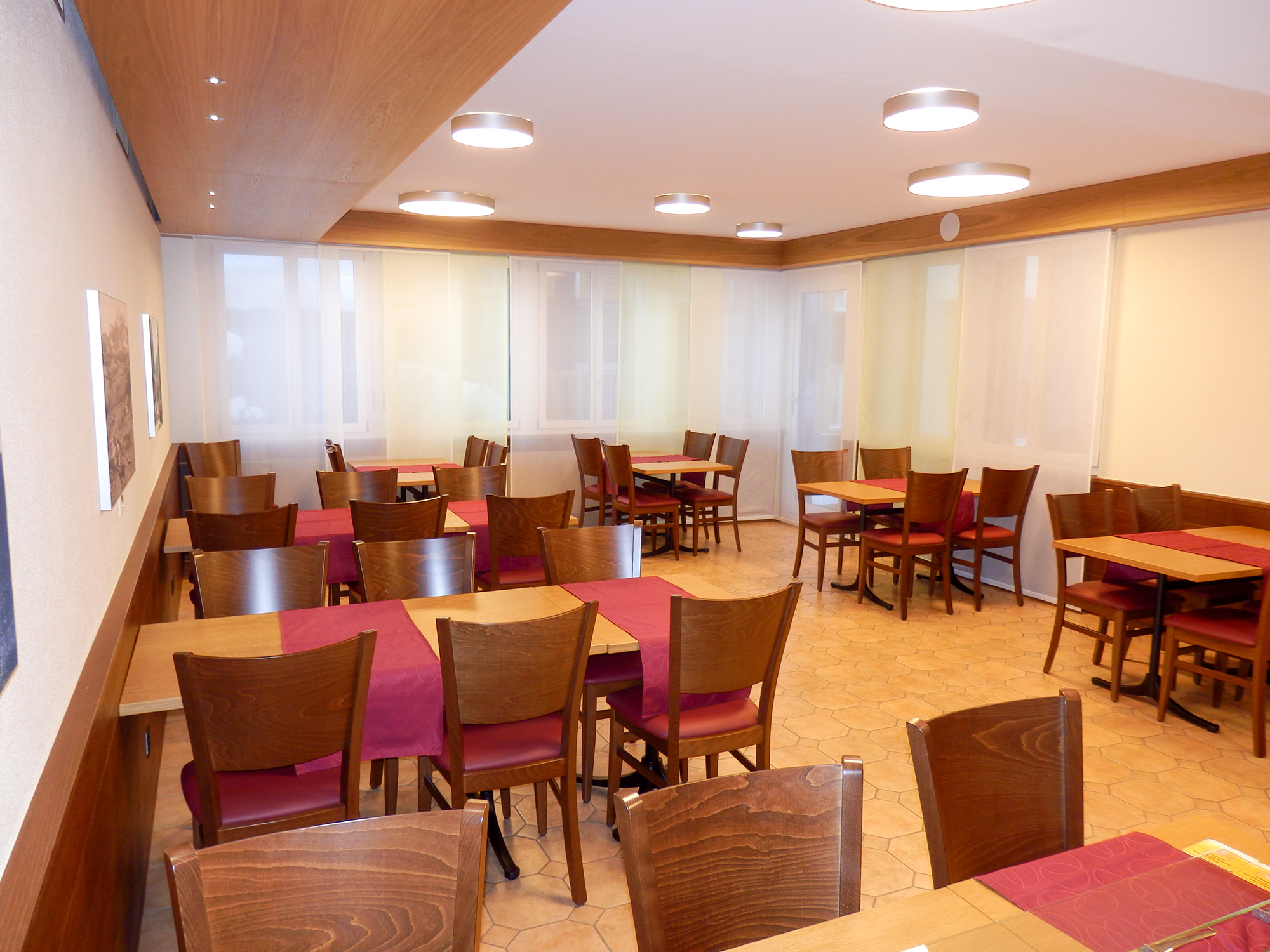Das Herzstück unseres Hauses ist die urchige Gaststube mit ihren 24 Sitzplätzen. Hier trifft man sich zum Znüni, fürs Feierabend-Bier, für einen gemütlichen Jass oder nach der Vereinsprobe. Mittags servieren wir Ihnen hier preisgünstige Menüs. Dieser Raum ist rollstuhlgängig.